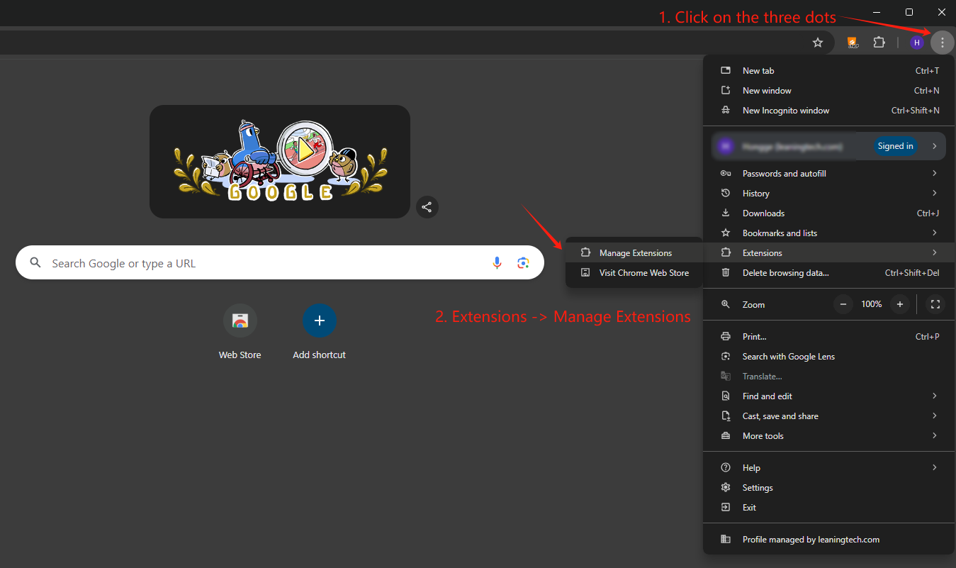 Step 2: Open Chrome Extensions Settings