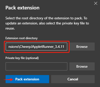 By following these steps, you will have successfully packed your CheerpJ Applet Runner extension for Edge, ready for deployment or testing.